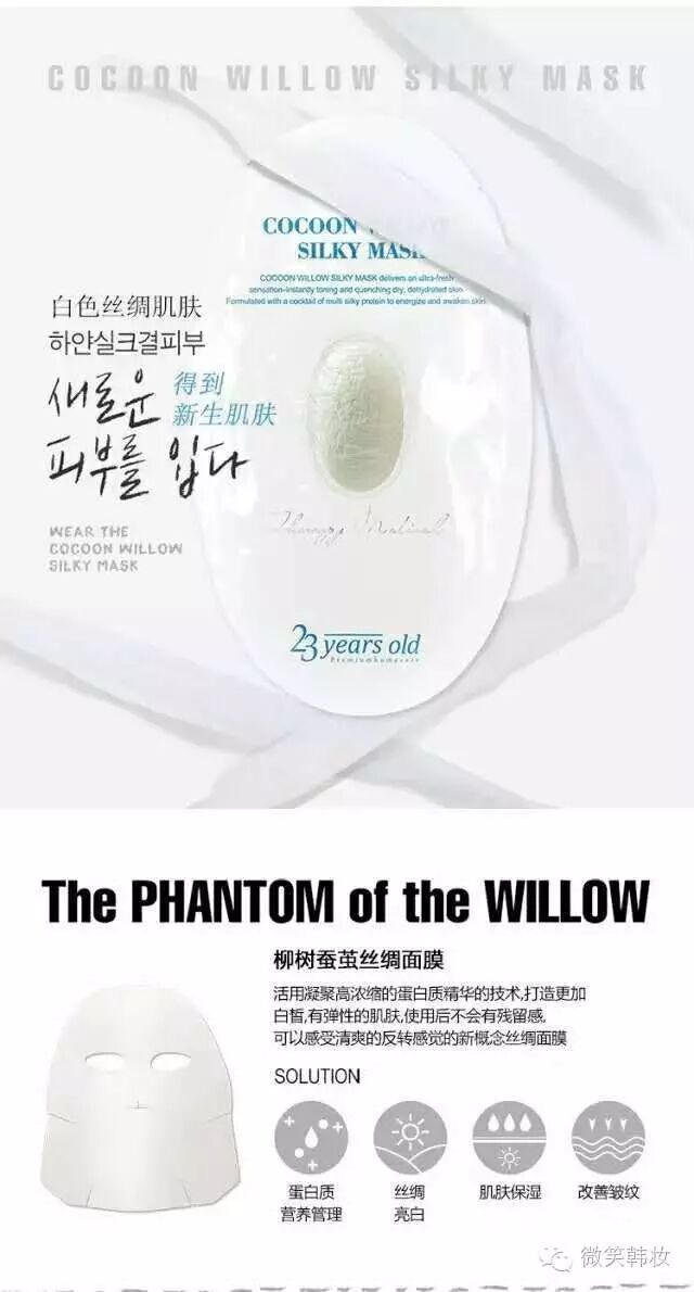 很多韩国妹子对这款面膜赞赏有加 大街小巷全是蚕茧丝面膜的影子.品牌本身没有那么多广告,完全靠口碑生存并跻身榜首.以前总有妞儿问 有没有补水美白整合在一起的面膜.
